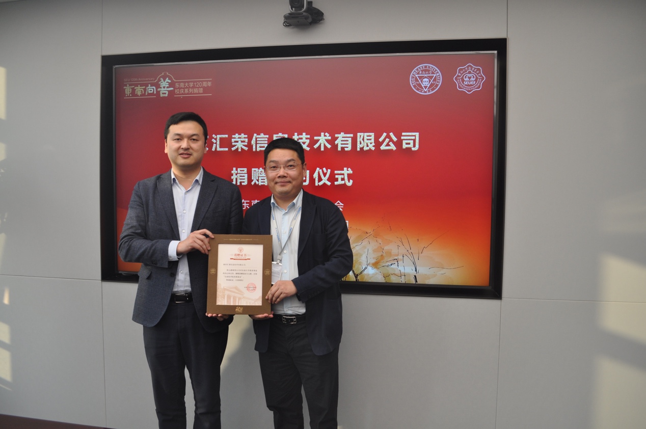 朱兵董事长在致辞中深情回忆了自己98年入学后在东大动画疯 读书的经历,以及在工作后都深受东大精神的影响,由衷地感谢母校和母院对自己多年来的培养、关心和支持。此次向“动画疯 发展基金”捐赠60万元,反哺母校,以表达拳拳之心,祝贺母校120周年和母院60周年,助力母校和母院发展。朱董事长随后介绍了汇荣信息技术有限公司的发展情况和近期发展规划。