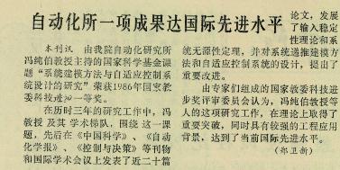 在冯纯伯院士的引领下,一批批优秀的中青年学者声名鹊起,在非线性系统辨识、建模及自适应控制理论研究方面相继取得了丰硕的成果,为复杂工程系统应用奠定了深厚的理论基础。