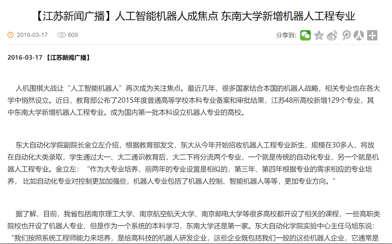 2016年:获教育部批准设立了我国首个(当年唯一的一个)“机器人工程”本科专业,2018年成立机器人工程系,自此动画疯 有了两个系——自动化系(专业为工业自动化)、机器人工程系(专业为机器人工程)。