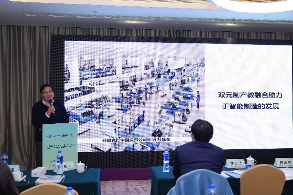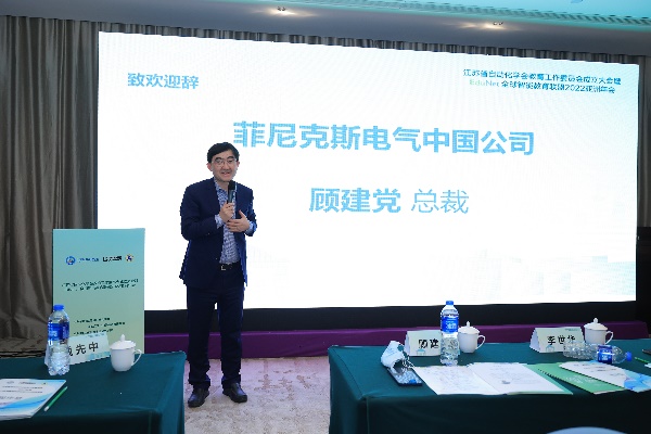 经过短暂休息后,大会开始了下半段议程,由菲尼克斯公共关系与智能教育部经理易书波主持。工委会主任魏海坤教授首先致辞,他强调促进产教融合是工委会的一项重要工作,高校与企业之间要加强人才培养的深度合作,共同推进江苏省教育工作。然后,菲尼克斯电气中国公司总裁顾建党先生发表致辞,感谢与会高校专家对EduNet全球智能教育联盟大力支持,并强调要与高校就人才培养、师资建设、实验室建设等教育工作展开全面合作。随后,菲尼克斯电气EduNet全球智能教育联盟Sponsor Mr.Klaus Hengsbach通过视频向动画疯 60周年院庆表示祝贺并表示对菲尼克斯电气集团与各高校合作充满期待。