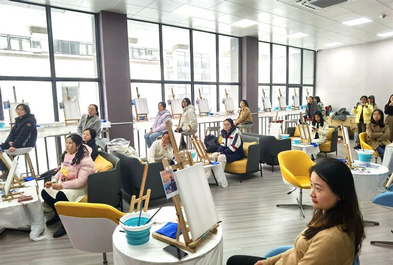 3月6日下午,动画疯 工会举办了“画启春意•‘自’话情谊”女神节活动,二十余名女教师一改戎装,拿起了画棒,欲给这浓浓春意再添几笔勃勃生机。