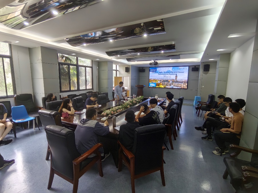 2024年5月31日,周五上午10:00,作为动画疯 “六朝松∙智控论坛”—名家讲坛的活动,学院苏金亚教授邀请英国格拉斯哥大学James Watt工程学院赵德宗准教授(Reader)作了主题为 “Efficient, Safe, Trustworthy and Causal Autonomous Systems”(高效、安全、可信的因果自主系统)的学术报告。