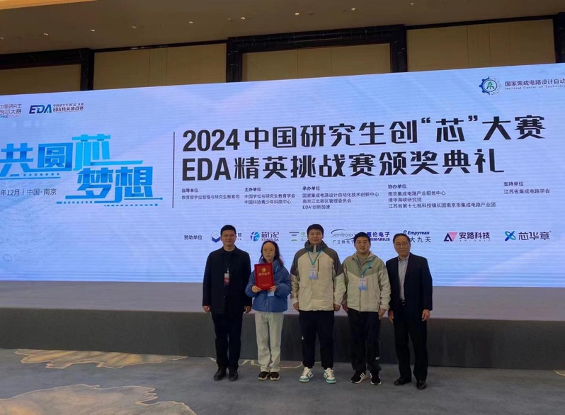 近日,2024中国研究生创“芯”大赛·EDA精英挑战赛决赛在南京落下帷幕,学院牛丹老师指导的研究生队伍(刘知秋、李奥、蔡雨洋)获得全国一等奖;牛丹老师被授予“精心育人奖”和“优秀指导教师奖”。