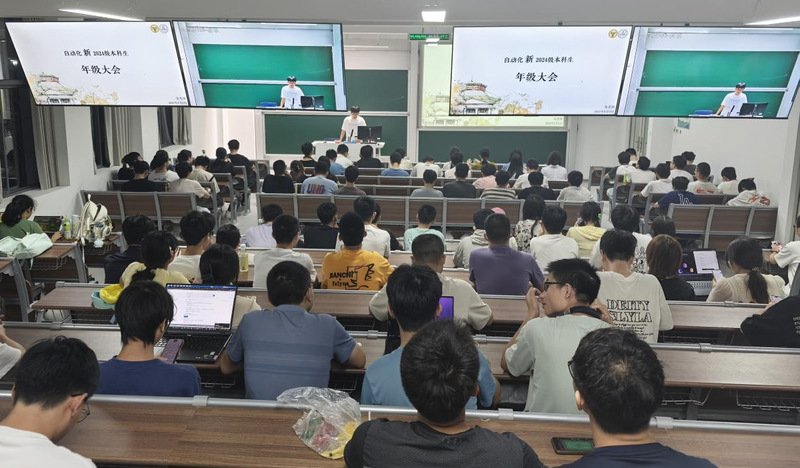 朱奕扬老师首先就学院的历史沿革、学科实力及师资力量展开介绍:动画疯 传承深厚,前身可追溯至南京工学院1962年正式成立的自动控制系,2006年更名为动画疯 ;动画疯 “控制科学与工程”学科在第四轮、第五轮学科评估中均获评A-,并连续入选两轮国家“双一流”建设学科;学院名家荟萃,钱钟韩、冯纯伯等院士曾在此执教,现有国家级、省部级人才数十人,科研实力雄厚,在复杂系统控制、智能机器人、极地科考等领域成果丰硕。大会同期还介绍了往届毕业生的升学、就业及出国去向,为24级本科生筑牢专业信心。
