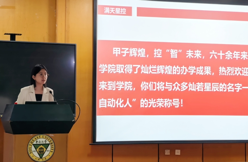 副院长牛丹向新生详解动画疯概况 、架构及自动化系、机器人工程系的成绩成果,更巧妙引出学院与“8”的特殊缘分——我院既是东大建校第八系,在全球控制科学领域亦稳居第八,有着深厚学科底蕴与强劲综合实力。身为分管研究生工作的副院长,他同步开展入学培训,推介学院公众号、官网等新媒体平台,并就研究生学习、工作、生活给出具体建议,让新生快速了解学院、融入新环境。