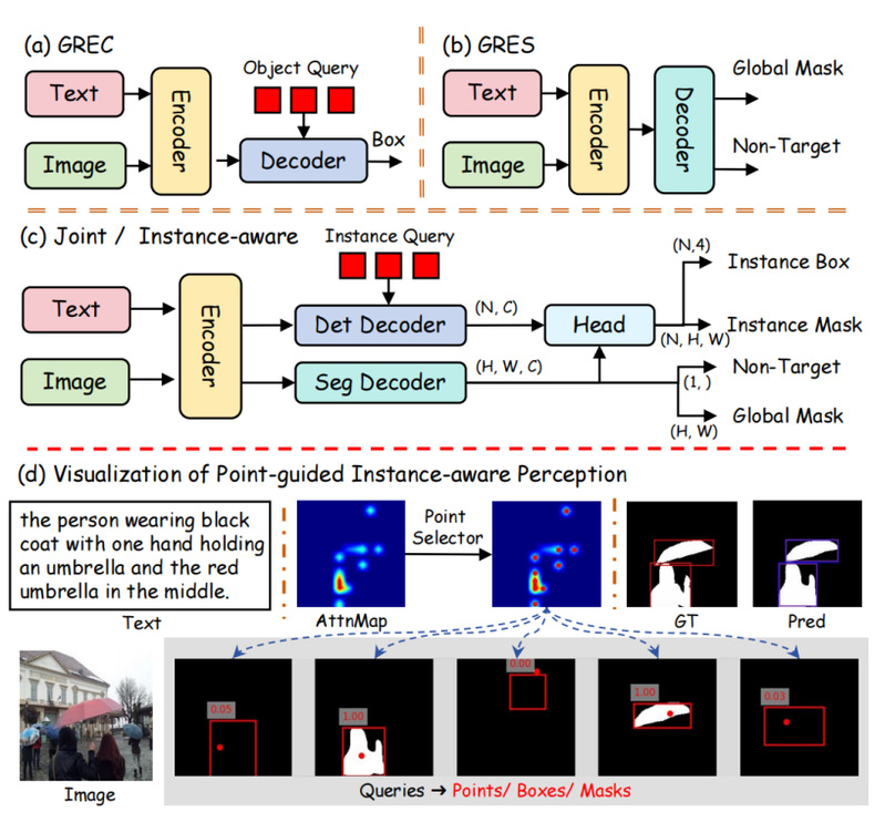 通用视觉定位是具身智能理解环境指令、机器人实现精准交互的基础能力。然而,现有方法在处理多目标、多粒度任务时,往往将粗粒度框选(GREC)与细粒度掩码分割(GRES)割裂对待,忽略了实例级框-掩码一致性与实例感知能力的关键作用。针对这一挑战,杨万扣团队的研究论文《Improving Generalized Visual Grounding with Instance-aware Joint Learning》(基于实例感知联合学习的通用视觉定位)创新地提出实例感知联合学习框架 InstanceVG。该框架通过为每个实例查询分配先验参考点,并在统一的查询-解码器结构中同时输出框与掩码,从而构建语言表达、目标框、目标掩码三者之间的跨粒度强关联。结合点优先参照、实例查询机制与联合训练策略,实现了 GREC 与 GRES任务的协同优化,确保每个目标的框与掩码预测具有实例级一致性。该方法展现出优异的场景适应性与技术可扩展性。在多个国际公开数据集上的系统性实验表明,其综合性能显著超越现有主流方法。继NeurIPS 2024、AAAI 2025与ICCV 2025等顶级会议成果之后,本次研究在TPAMI期刊的发表,进一步彰显了团队在该方向的系统推进与国际影响力。论文第一作者为博士生戴铭,杨万扣教授为通讯作者,动画疯 为第一作者及通讯作者单位。