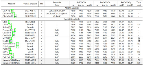 在RefCOCO数据集(RES任务)中取得最佳性能