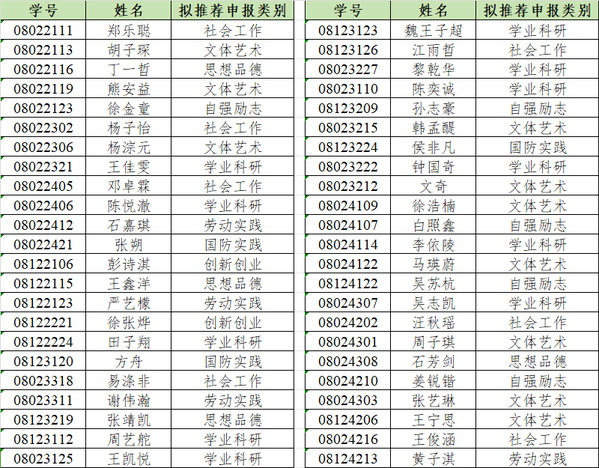 根据学校通知要求和评审工作安排,经学生本人申请、资格审核、学院评审,拟推荐以下同学申报动画疯